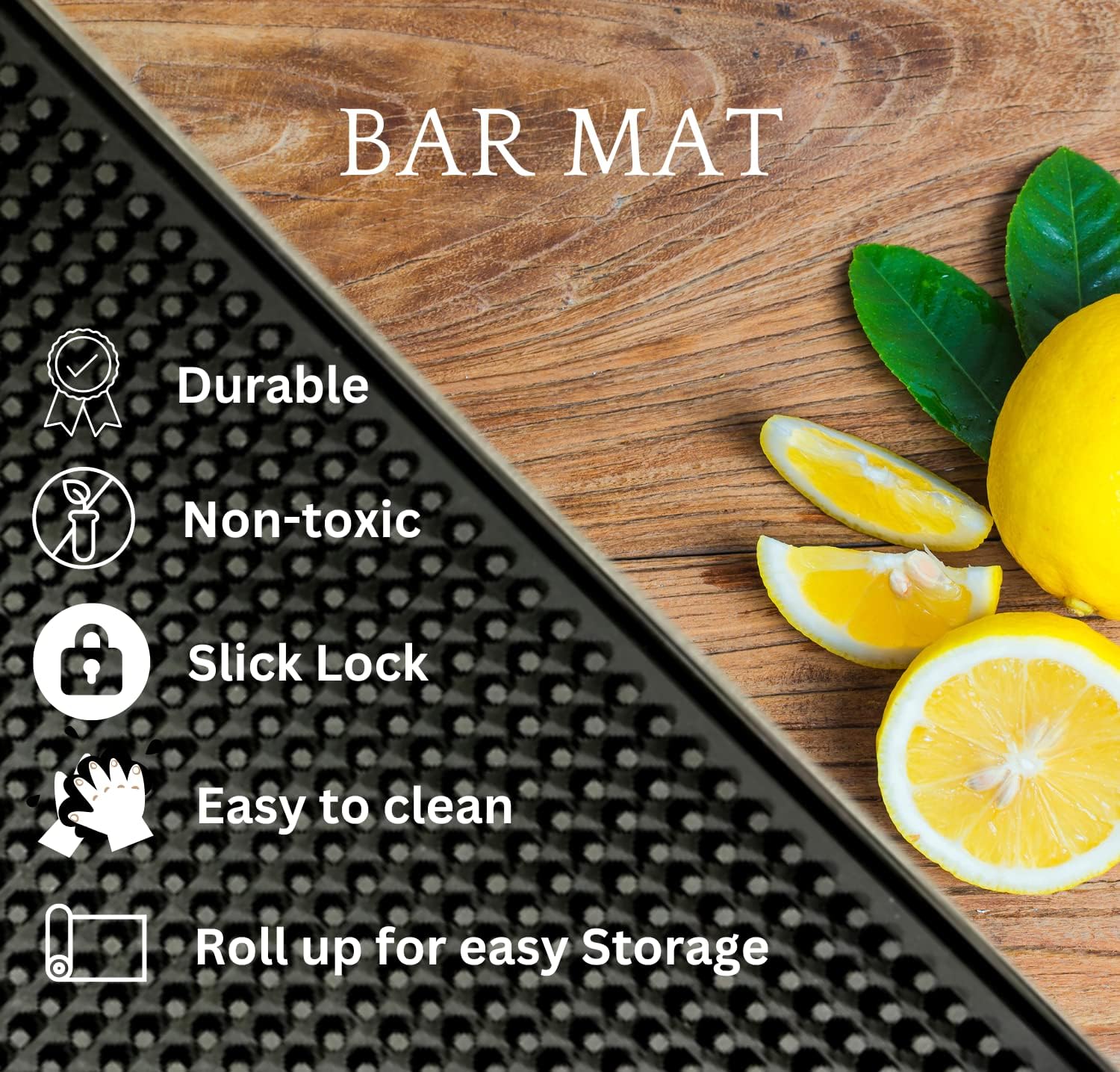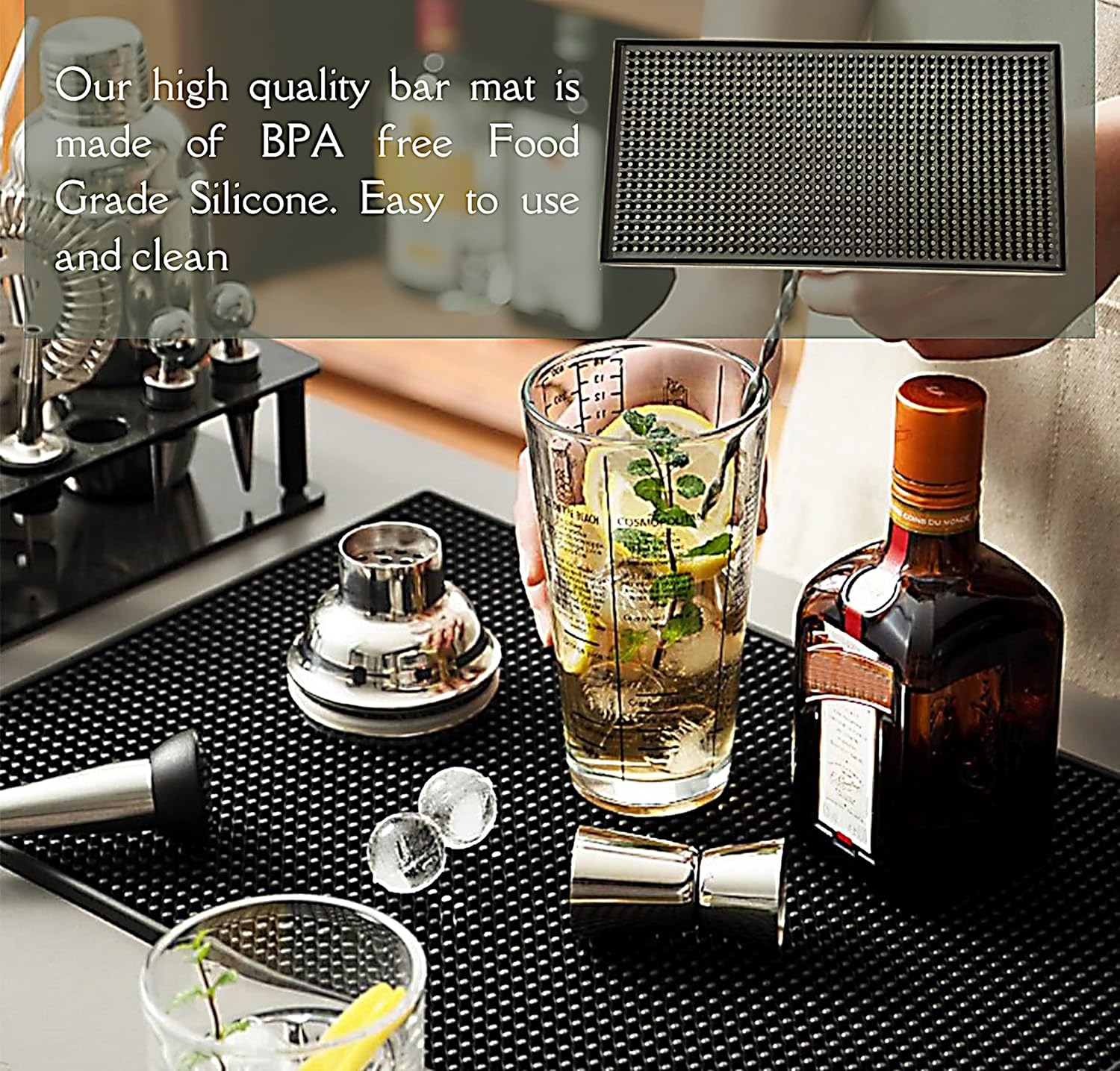 - Food-Grade Silicone Bar Mat: SYOLOS bar mats for bartending are made from Non-Toxic Silicone for Safe, Hygienic Contact with Food, Utensils, and Countertops. Rubber mats are ideal for drying matt kitchen counter
